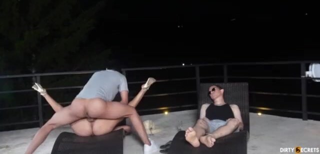 Joven latina folla al camarero del hotel junto a su novio dormido. Español