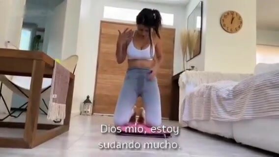 Día de yoga en casa sola con su perro. Sub