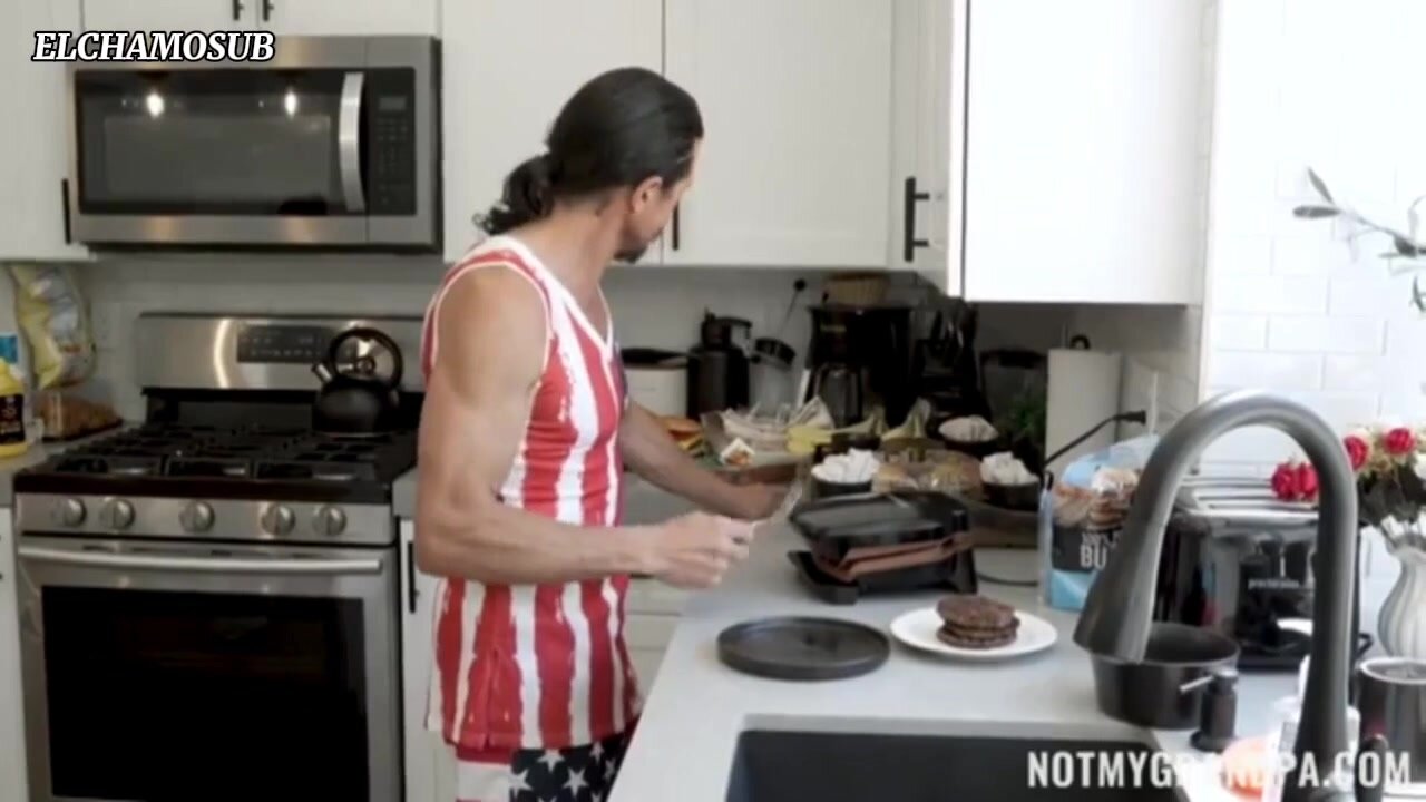 Grandpa gets an erection from medication and his granddaughter helps him