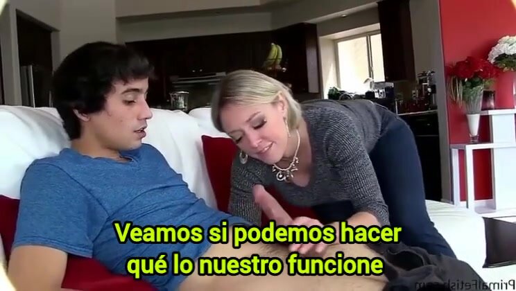 Hijastro y su novia terminan en trío con su madrastra sub esp.