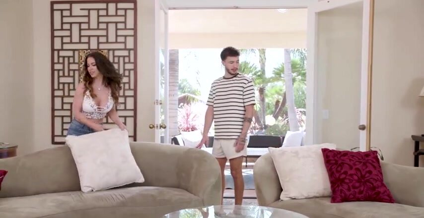 Esposa caliente XXX Alex Harper en medias de nailon folla en su dormitorio