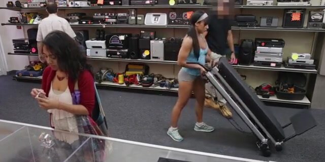 Chica sexy va a un casa de empeño